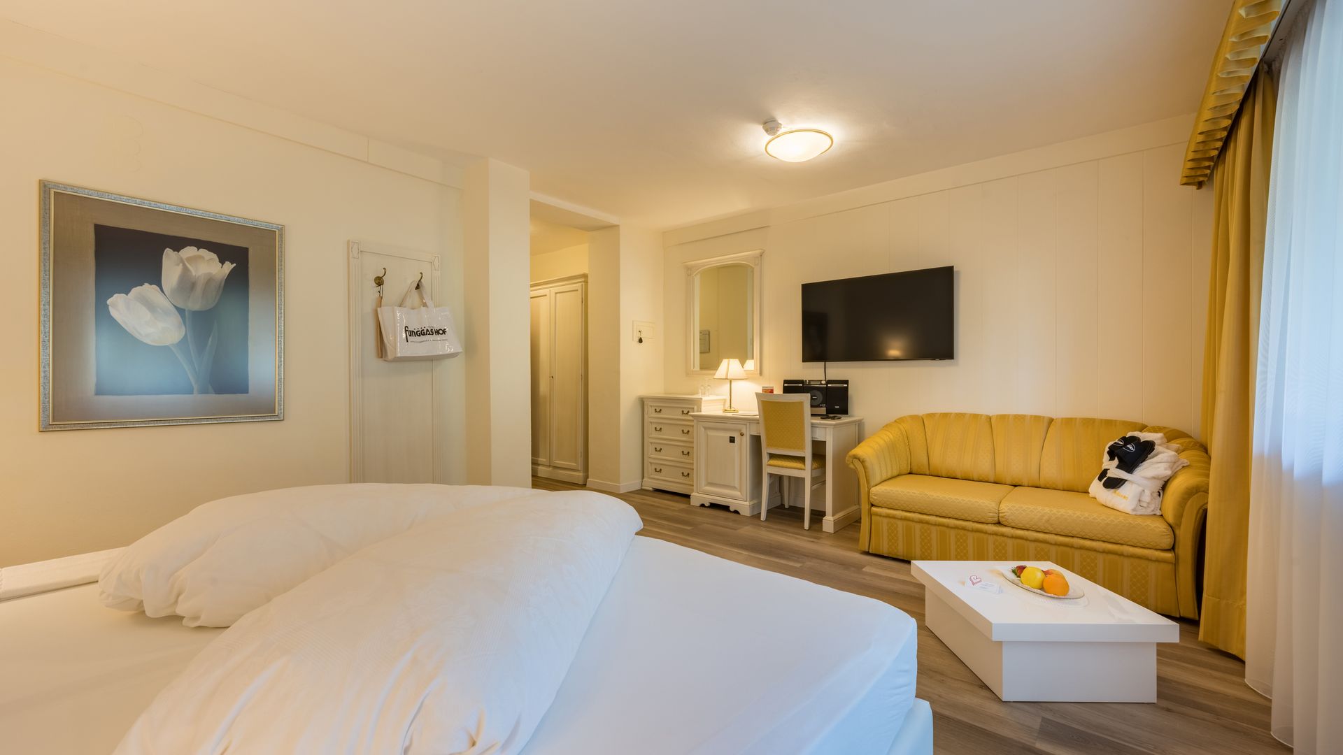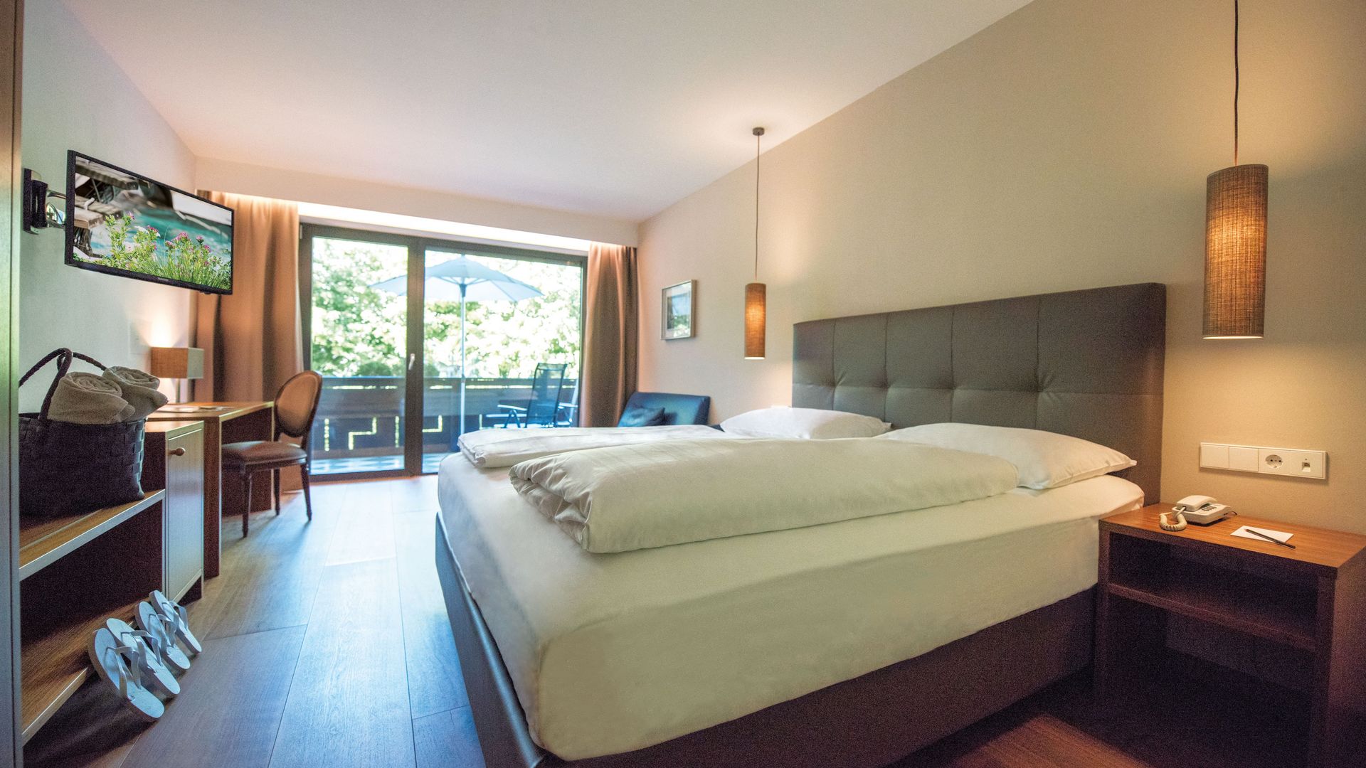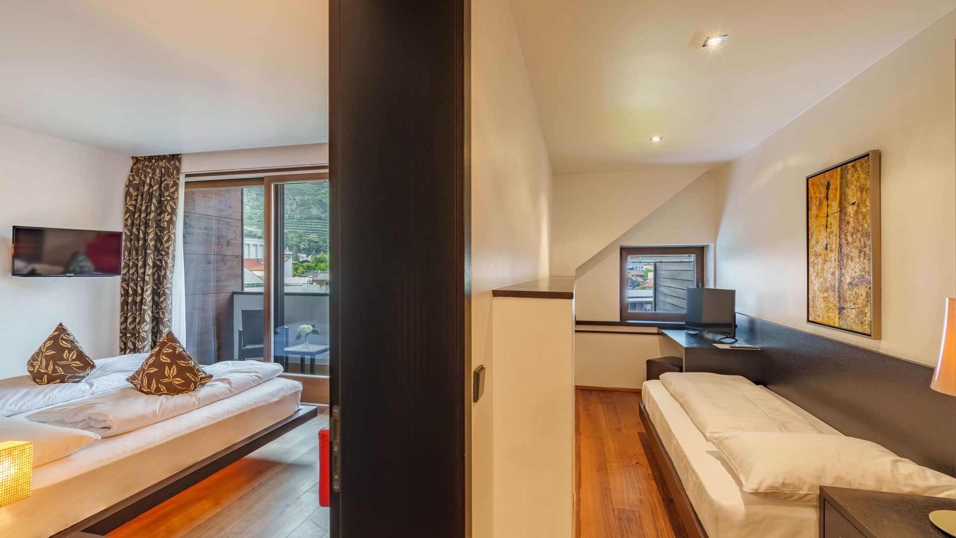Richtung Ortlermassiv und Gartenlandschaft, großer Sonnenbalkon mit Nachmittagssonne, gratis WLAN